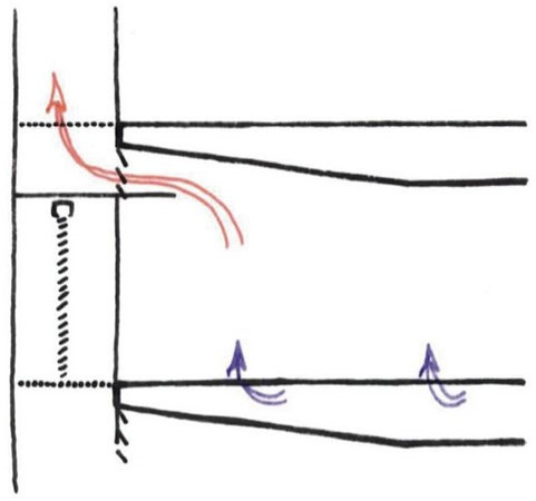 Figure 6: The use of a sloped ceiling to improve daylight penetration into a room