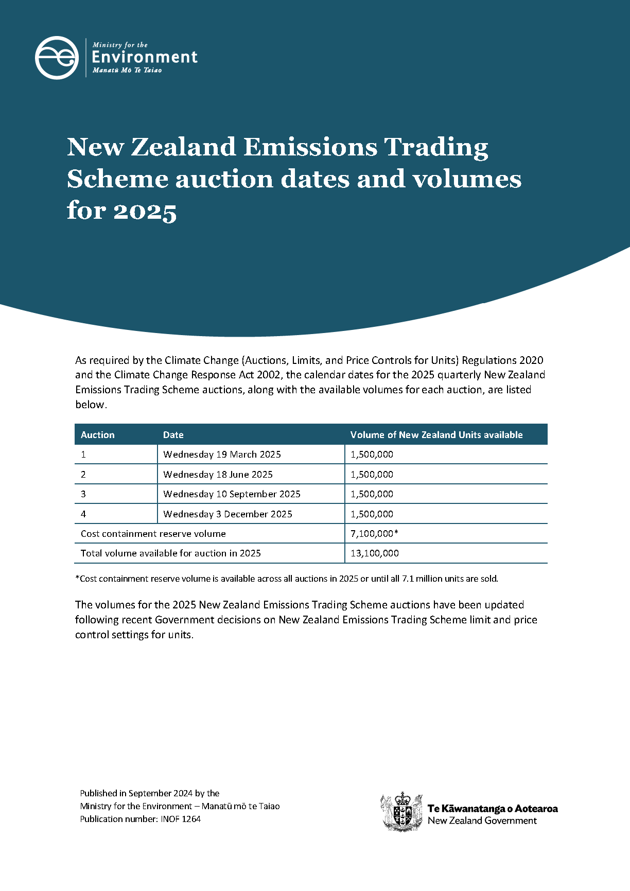 There is one remaining auction date for 2025. That is Wednesday 3 December 2025 for 1.5 million NZUs.